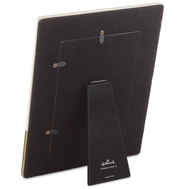 - Ceramic frame features gold metallic accents, embossed lettering and a linen texture.