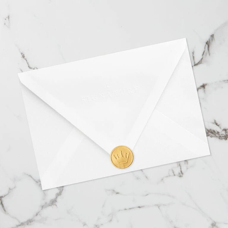 - Includes one card and one envelope with a Gold Crown seal. Envelope color may vary.