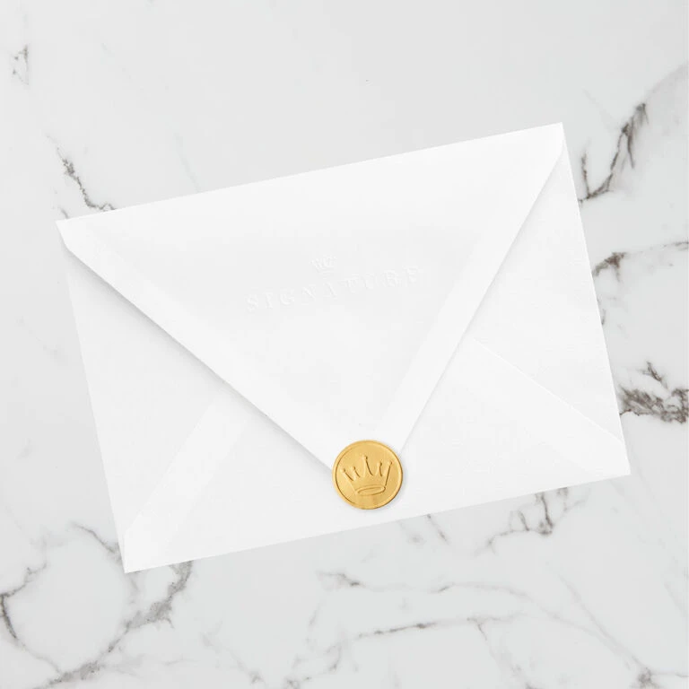 - Includes one card and one envelope with a Gold Crown seal. Envelope color may vary.