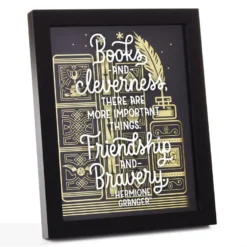 - Harry Potter framed quote sign features Hermione Granger quote and design of books and Wizarding World symbols.