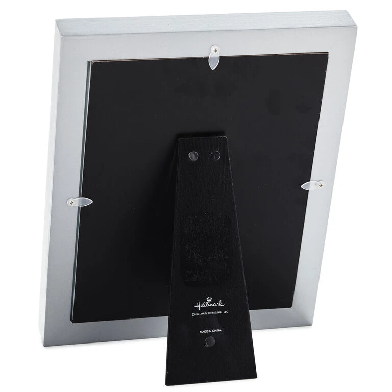 - Baptism-themed picture frame features silver finish and white mat with message.